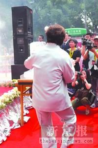 中新网6月7日电 据新京报报道,成龙于昨日现身北京,为某楼盘的开盘仪式担任剪彩嘉宾。不料现场引发火情,成龙大哥在情急之下也纵身跳下搭建的平台,显示不凡的身手。