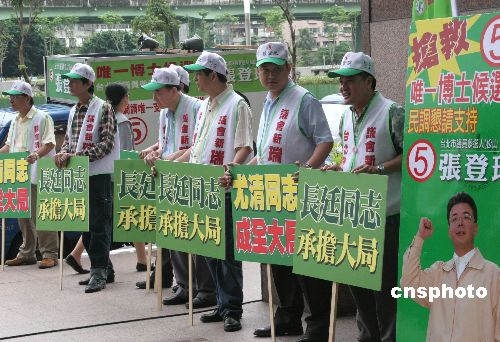 6月7日,民进党一位台北市议员参选人在该党中央党部前造势,主张谢长廷出选台北市长,尤清退让。目前,民进党内对该党台北市长候选人存在分歧,许多人主张谢长廷出马,而尤清亦表达强烈的意愿。中新社发 黄少华 摄