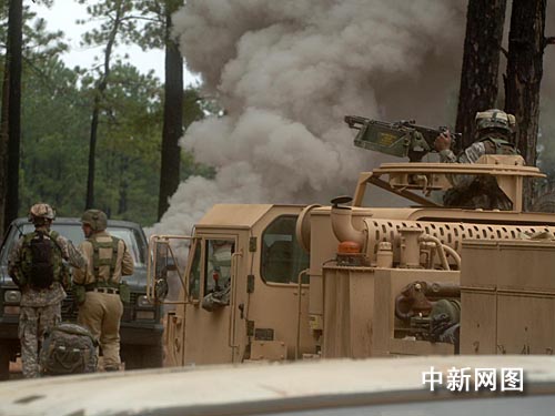 当地时间六月七日,美军福特伯克堡基地仿真训练中心进行了一场逼真的伏击战演习,我社记者实地采访。演习中雇佣的许多伤残陪练群众来自伊拉克。 美军一年四万名士兵必须来此,按照司令官的意图:体验战争前,先接受“战火”的洗礼,然后奔赴伊拉克和阿富汗战场...... 中新社发 贾国荣 摄