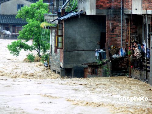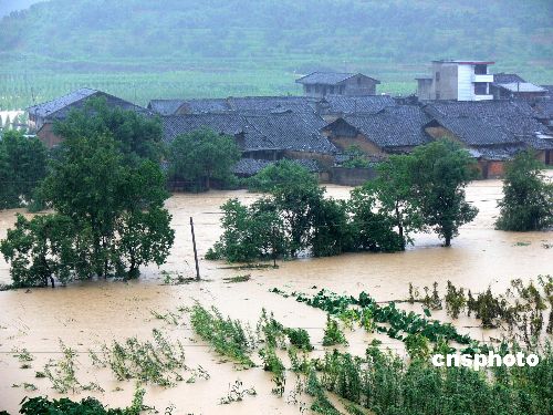 福建北部建瓯市是全省今年暴雨洪灾最为严重的地方,城区三分之二进水受淹,接近五十年一遇的洪水。图为六月八日,建瓯市小松镇大部分地区洪水还没有退去。中新社发 胡都 摄
