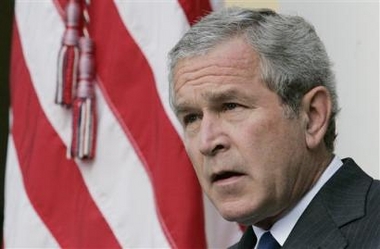 中新网6月8日电,在基地组织伊拉克分支头目扎卡维死亡消息传出之后,美国总统布什于北京时间6月8日19时20分在白宫玫瑰花园就扎卡维被炸死亡一事发表公开讲话。图为美国总统布什。(春风)