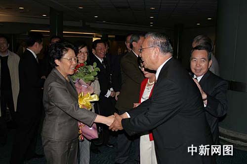 中国国务院侨务办公室主任陈玉杰率代表团六月八日抵达温哥华进行访问,成员包括国务院侨办国外司司长熊昌良、文宣司司长刘辉、经科司司长吴洪芹等。六月八日下午,位于唐人街中心的温哥华中华会馆内充满乡亲乡情,六十四个侨团侨领聚集一堂,与刚刚抵温访问的中国国务院侨务办公室主任陈玉杰所率代表团展开对话交流。中新社记者 吕振亚 摄