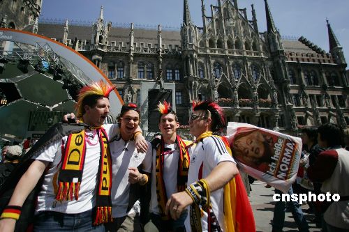 慕尼黑马林广场前的德国球迷。