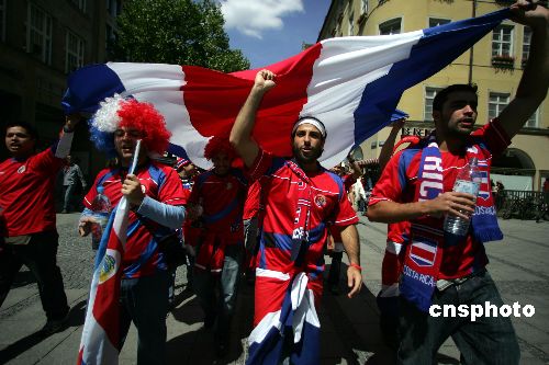 哥斯达黎加球迷在慕尼黑马林广场为己队加油。