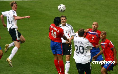 六月九日,德国世界杯揭幕战在慕尼黑世界杯体育场进行,东道主德国队最终以四比二战胜南美劲旅哥斯达黎加队,赢得世界杯小组赛开门红。中新社发 盛佳鹏 摄