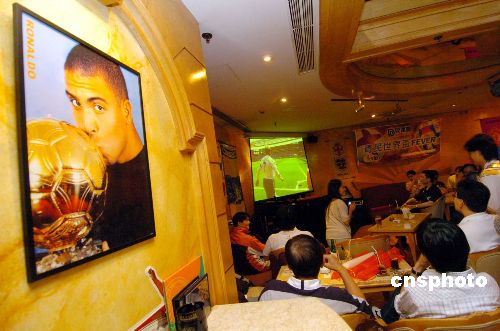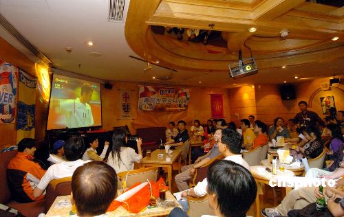 6月10日,世界杯足球赛开锣后英格兰对巴拉圭赛事,吸引众多香港球迷到酒吧、食肆把酒言欢观战,场面热闹腾腾。中新社发 洪少葵 摄