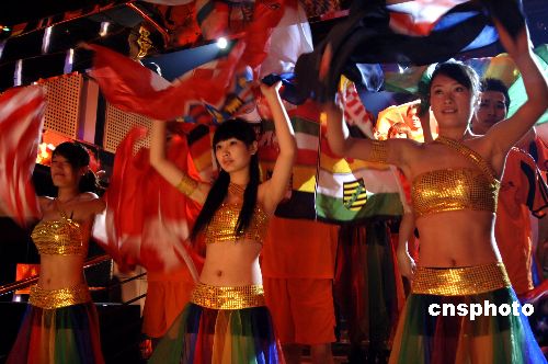 德国世界杯开赛以来,福州各“球迷酒吧”里世界杯的气氛也越来越浓,某酒吧推出的“足球宝贝”秀吸引众多球迷。中新社发 王东明 摄