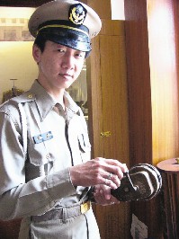 文物馆中最受游客欢迎的就是一具40年代的手摇式防空警报器,解说员李明典说,当时的警察得先挂上“空袭服务证”臂章执勤,再拚命手摇警报器通知居民疏散,由于声音不是很大,警察得一边跑一边摇。