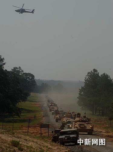 在辽阔的军营里,轮训部队就像刚刚转战到伊拉克一样,两天前集结完成,开始步步为营。记者换乘美军专车去某地教室就走了半个多小时,可见顶端型火车站边,排列着数百辆悍马军车,附近是成排的坦克,重型装甲车和机械化工程车辆阵容。