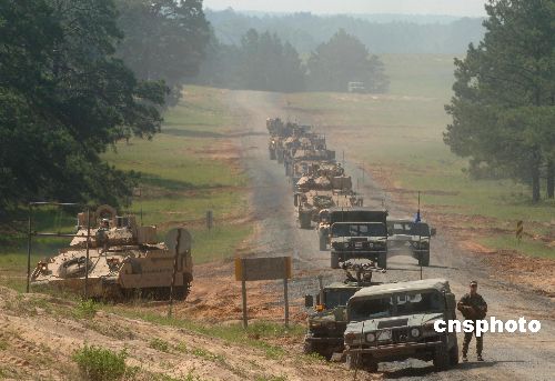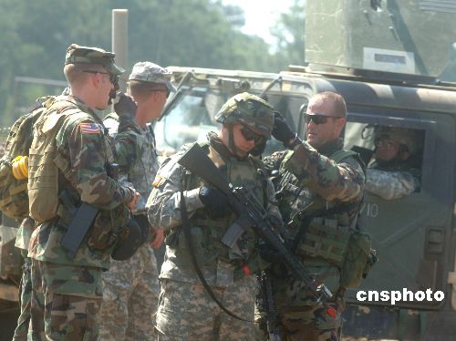 美军一支即将开赴伊拉克前线的步兵旅,六月上旬到美国福特堡仿真训练中心进行战场高度压力仿真轮训,以期适应伊拉克环境。中新社发 贾国荣 摄