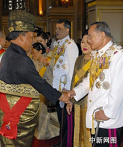 全球30多个国家王室成员及代表来到泰国首都曼谷,参加泰王登基60周年庆祝活动。(法新图)