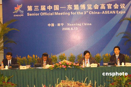 六月十三日,第三届中国—东盟博览会高官会在广西南宁举行。中国商务部亚洲司副司长吴政平、东盟秘书处副秘书长唐纳德·坦布南及东盟十国代表出席会议,共同商讨将于十月底开幕的第三届中国—东盟博览会的筹备工作。中新社发 林艳华 摄