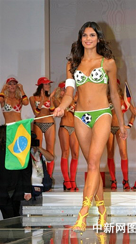世界杯开战之际,众球星的模特伴侣在巴西里约热内卢时装周的机会,上演了一场T台“世界杯”。众名模身着世界杯风格的时尚内衣大秀身材,下图从左到右为:智利球星内拉的妻子,意大利名将布冯的女友塞雷多娃,罗纳尔多女友奥利维拉。