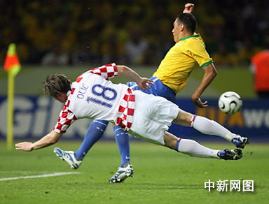 巴西队前锋线上的搭档罗纳尔多和阿德里亚诺表现欠佳,没有给克罗地亚队带来威胁。克罗地亚防守很成功,反击打得很果断,巴西队队员不得不用犯规来阻止。克罗地亚队队长尼科•科瓦奇在后腰位置上表现出色,很好的维持了球队的攻防平衡。不过,他运气欠佳,在一次防守时犯规得到黄牌后,他在第35分钟又受伤倒地,在坚持了五分钟后,被勒科替换下场。