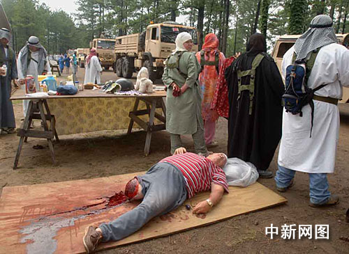 据介绍,约有一千二百名平民,每天在此担当陪练的各种角色,有时是天使良民,有时是魔鬼敌人,真假难辩。受训美军官兵必须深入这里的大街小巷和阿拉伯人群中,学会保护自己,掌握与各种人物达交道的沟通本领。“这里照样会负伤牺牲,但总比真在伊拉克流血送命好。”美军指挥员坦言。