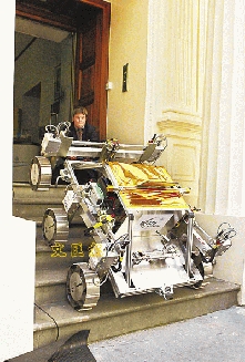 中新网6月14日电 英国科学家前日展出昵称为“布里奇特”的火星探测车的原型,它将搜寻火星的生命迹象,被视为历来最先进的探测火星仪器,6轮设计的“布里奇特”造价1.5亿欧元,长3米,阔1.8米。