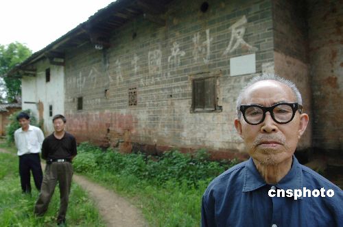 图为红军当年在韶关南雄市水口镇陈屋村驻扎时留下的标语。