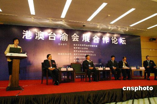 六月十五日,由重庆市对外贸易经济委员会、重庆市商业委员会和重庆国际会议展览中心联合主办的“港澳台渝会展合作论坛”在重庆拉开帏幕。来自香港、澳门、台湾和重庆会展企业的近两百人参加了此次论坛。图为论坛现场。中新社发 郭晋嘉 摄
