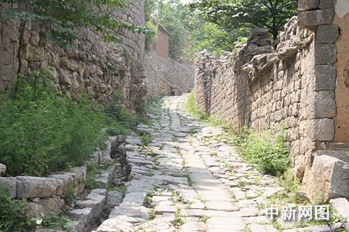 中新网6月16日电 在山东省章丘市明水城东南5公里处,有一座历史文化名村——朱家峪。旭日初升,照耀着石砌圩门的残垣断壁,弯月当头,辉映的青石古道泛着冷冷的光。一眼看去就有一种历史的沉重和沧桑感。