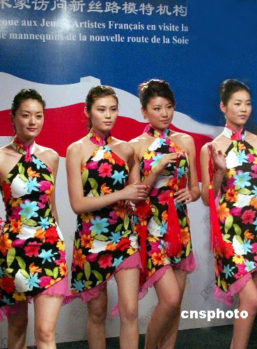 图为新丝路模特举着中国国旗和法国国旗展示风采。近日,法国艺术家代表团一行到中国时尚领域的代表——新丝路机构进行参观访问,同时就相关培训、演出问题做进一步的交流。是次访问是继2005年12月,温家宝总理在访法期间与法国领导人就中法开展青年交流达成共识之后,两国政府于2006年各派青年互访,并由全国青联与法国外交部共同承办交流项目。中新社发 钱兴强 摄