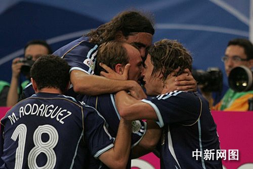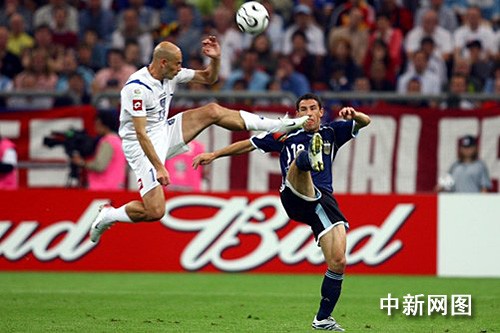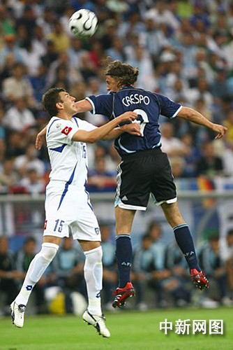 第18届世界杯足球赛C组结束第二轮首场争夺。在盖尔森基兴傲赴沙尔克球场,阿根廷以6-0轻取塞黑取得两连胜,并且创造了本届世界杯目前为止最悬殊比分。摄影:中新社记者 盛佳鹏
