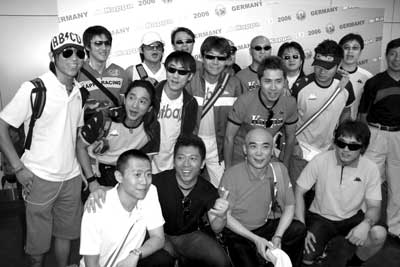 中新网6月19日电 在家里看球赛不如到现场去看世界杯,据北京娱乐信报报道,由羽·泉、景岗山、罗中旭等国内一线明星组成的赴德观光团一行十八人前天上午出发前往慕尼黑。据悉,众明星将在德国观看两场球赛,而众多同样抱着追星心理去的明星们同样希望此行能够得到偶像们签名的足球。