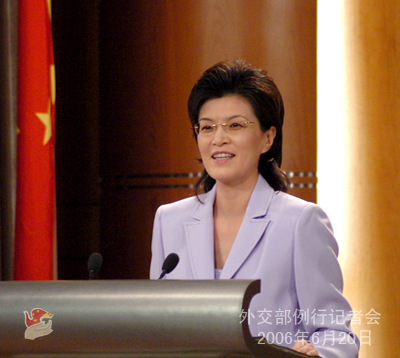 中新网6月20日电 据外交部网站消息,2006年6月20日下午,外交部发言人姜瑜主持例行记者会就朝鲜发射远程导弹、印度竞选下一届联合国秘书长等问题回答了记者的提问。