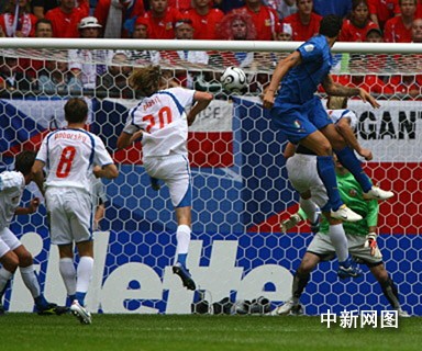 比赛刚刚进行到第17分钟,意大利队后防线传来坏消息,主力后卫内斯塔腹股沟拉伤,不得不提前下场,高大的后卫马特拉奇顶替他出场。第25分钟,捷克队波博斯基横传中路,内德维德劲射被布冯扑了出来,扬库洛夫斯基左路插上补射再次被布冯神奇扑出。