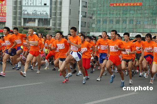 6月23日,呼和浩特市体育局举办2006年“迎大庆、创未来”万人长跑活动。中新社发 李爱武 摄