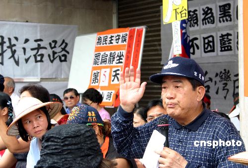 六月二十五日,亲民党主席宋楚瑜在台湾“立法院”群贤楼前静坐,吁民众团结一致“呛扁下台”。中新社发 邹辉 摄