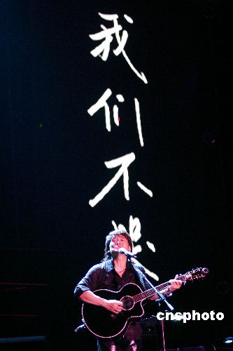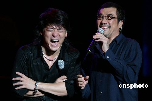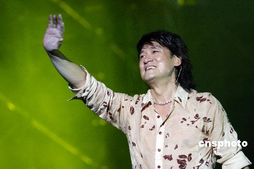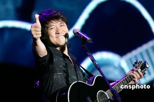 2006年6月24日晚,华健20南宁演唱会在南宁民歌广场举行。面对1万5千观众,华健挥汗如洗,彻底“湿身”。嘉宾李宗盛的出场,把演唱会推向高潮。“忘词大王”依然离不开提词机。演唱会4个小时华健共唱了40首歌。中新社发 骆文刚 摄