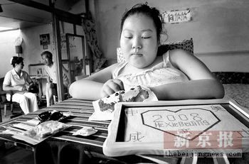 中新网7月22日电 新京报消息,“我要活到2008年。”说这句话时,15岁女孩何欣欣笑得很羞涩。几天前,这名身患先天性重症肌无力的女孩刚完成了一幅十字绣作品“申奥成功”。她说,自己最大的愿望就是有生之年,能亲眼看到北京奥运会开幕式。