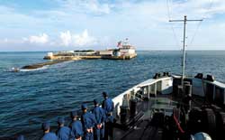南沙守备部队的执勤哨位散布在遥远的南沙群岛。那里沧海茫茫,孤礁座座,坚守在礁堡上的官兵,既要战胜高温高湿高盐的环境,又要经受孤独寂寞艰险的考验,任务之艰巨,条件之艰苦,常人难以想象。出于对官兵的关心和保持战斗力的需要,南沙守备部队实行轮换制。今天,我们有幸随同第77批守礁将士一起出征。