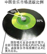 不仅KTV存在音乐电视作品侵权问题,国际唱片业协会统计显示,目前中国音乐市场大约90%为盗版,盗版音乐市场规模已达4亿美元左右。现在的唱片公司很难靠发行唱片挣到钱,其中来自盗版的阻击是一个重要的原因。于是,在文化体制改革年的2006年,维护音像知识产权的第一拳便砸向了KTV。文化部和国家版权局近日接连对KTV发出了缴纳著作权费用的“通谍”。