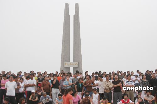 记者凌晨来到纪念碑,那里已经有从昨天黄昏就等候的人了。黄巍巍并不是唐山人,今天她从山东济宁赶了一天的路就是为了到这里哀悼一位亲属。他的名字叫江龙涛,全家五口全部遇难。黄巍巍带来了发给这位参加过抗日战争的老军人的纪念章,此刻默默地守候在唐山。