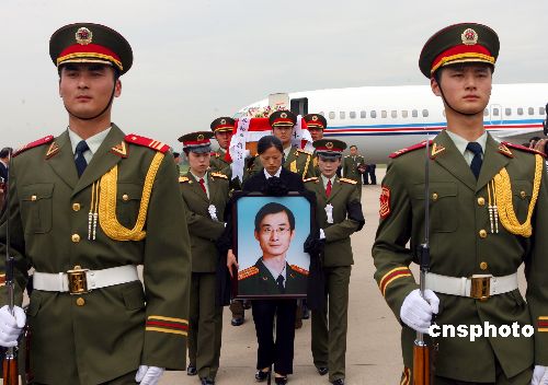 中新网北京8月2日电 (记者陶社兰)接运杜照宇烈士灵柩回国的专机,于今天上午10时在北京南苑机场降落。