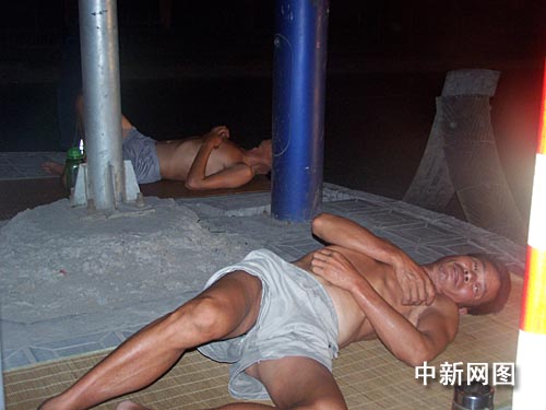 这几天杭州都是三十七、八度的高温,像老王一样难挡室内高温而又付不起电费的农民工,只好以天为被,以地为席,露宿街头。