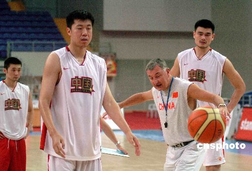 2006年8月14日,斯坦科维奇杯洲际冠军篮球赛所有参赛队伍从江苏南京移师昆山。决赛阶段的比赛将于8月15日在昆山体育中心体育馆进行。中国男篮在备战与澳大利亚队争夺第五名的赛事。中新社发 吴峻 摄