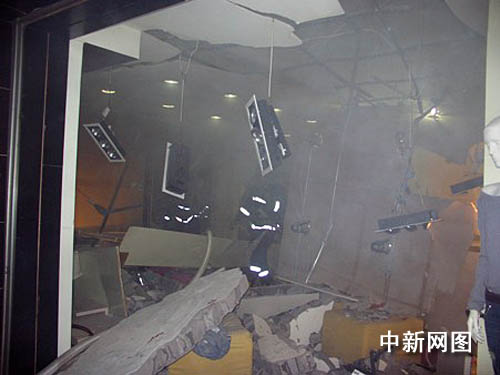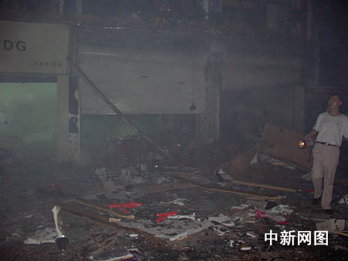 二十五日晚八时许,重庆市万州区双白路佳庆大厦发生爆炸,位于一楼的万州最大家电卖场内大量家电产品被炸成碎片,爆炸产生的强大气流造成数人受伤。爆炸发生后,当地警方迅速设置警戒线封锁了现场。目前,伤者均被送到当地三峡中心医院治疗,爆炸具体原因正在进一步调查中。图为事故现场。