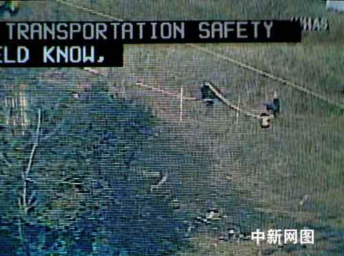 镜头从已封闭的整洁的机场跑道开始搜寻,迅速在跑道尽头一片黑烟熏染处定格:本来堪称景色如画的绿草地和小树林边,竟然是航空悲剧发生之地——草地绿叶被烧焦,几块飞机残骸散乱在两座小仓库的平房边,救护车布满四周,美国救援人员在封锁带里忙于整理出事现场,技术人员在调查事故原因。机场周围的高速公路全部封闭,只见救护车辆穿梭往来。