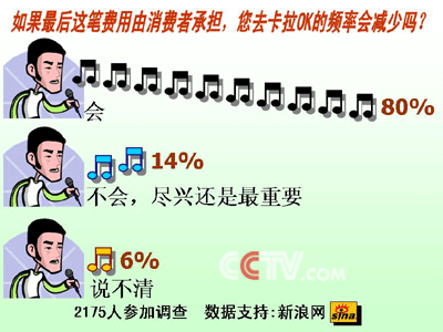 上周,国家版权局对于卡拉OK这个版权费到底应该怎么收,给了一个初步的标准。这个标准是在卡拉OK的营业场合,一个包间一天收12块钱的版权费。那么,爱唱卡拉OK的人听到这个消息以后,就开始担心了。他们会想,这笔钱卡拉OK歌厅交上去之后,羊毛是出在羊身上的,他们会不会把这笔钱转嫁到消费者头上呢?接下来我们就听听几个爱唱K歌的人是怎么说的。