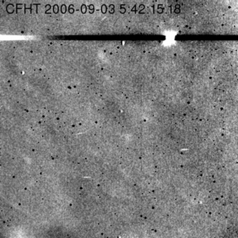 图中的撞击亮点两边的黑线是由于爆炸产生的亮度太强,对光亮扫描线的处理失误造成的。(章田/雅龙)