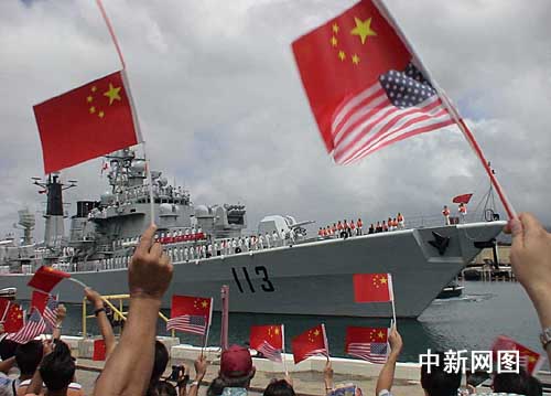 中新网夏威夷9月6日电(记者 贾国荣) 中国海军舰艇编队今天中午乘风破浪驶抵美国夏威夷珍珠港,受到美国海军和当地华人华侨和留学生们的热烈欢迎。
