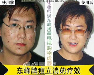 2006年8月18日,时尚界化妆师侯东峰在自己的博客上公布了一组自己的照片。通过化妆前和化妆后的对比,侯东峰现身说法揭露,哪些曾经在电视购物广告中被吹得天花乱坠的美容产品,其所谓惊人效果不过都是一派谎言。