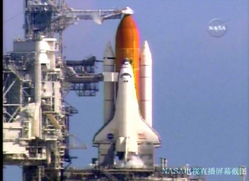 中新网华盛顿九月九日电 (记者 邱江波)今天上午十一点十五分,美国航天局所属航天飞机亚特兰蒂斯号点火发射,成功升空,航天飞机身后划出一道长长的白色烟轨,消失在人们的视线尽头。