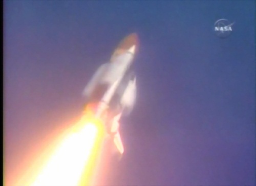 中新网华盛顿九月九日电 (记者 邱江波)今天上午十一点十五分,美国航天局所属航天飞机亚特兰蒂斯号点火发射,成功升空,航天飞机身后划出一道长长的白色烟轨,消失在人们的视线尽头。图为亚特兰提斯号航天飞机发射现场图片。