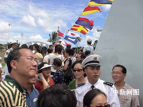 中新网夏威夷九月九日电(记者 贾国荣) 旅美华人华侨连日扶老携幼来到美军珍珠港,参观访问美国的中国海军舰艇编队,感受祖国欣欣向荣的新气象,慰问子弟兵。