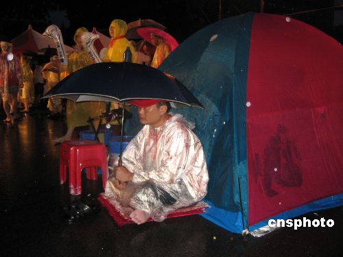 9月10日,百万人反贪腐倒扁静坐继续在台北举行。上万民众冒着大雨参加。中新社发 肖龙联 摄