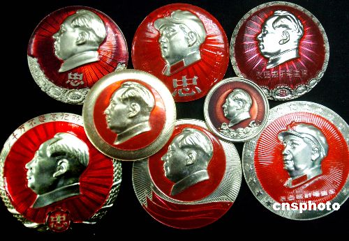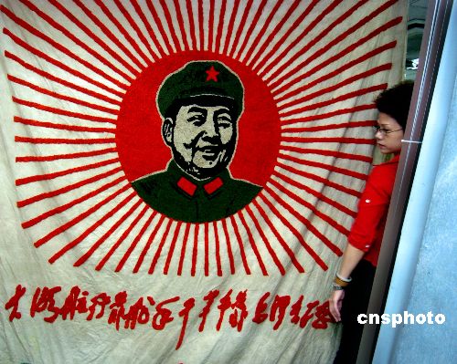 香港普艺拍卖公司将于九月十六日拍卖部分中国文化大革命时期的纪念品。十二日该公司对新闻界展示部分像章﹑陶瓷制品﹑壁毯﹑钱币等有毛主席画像的纪念品。--“劳动模范王进喜”彩陶。中新社发 宋吉河 摄
