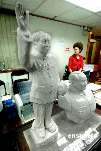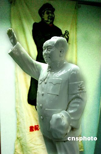 香港普艺拍卖公司将于九月十六日拍卖部分中国文化大革命时期的纪念品。日前该公司对新闻界展示部分像章﹑陶瓷制品﹑壁毯﹑等有毛主席画像的纪念品。中新社发 宋吉河 摄